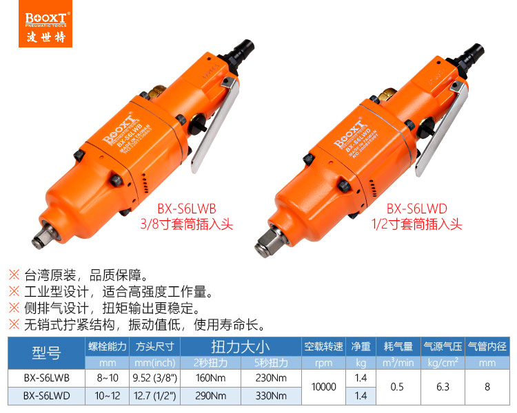 東莞市強勁五金工具有限公司提供臺灣BOOXT波世特品牌氣動工具,直柄氣動扳手BX-S6LWB廠家直銷,首件享特價。咨詢熱線:4008301980