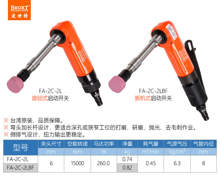 東莞市強(qiáng)勁五金工具有限公司提供臺(tái)灣BOOXT波世特品牌氣動(dòng)工具,風(fēng)動(dòng)深孔打磨機(jī)FA-2C-2LBF廠家直銷,首件享特價(jià)。咨詢熱線:4008301980