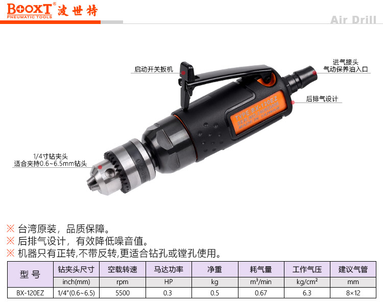 東莞市強勁五金工具有限公司提供臺灣BOOXT波世特品牌氣動工具,超短直式氣動鉆BX-120EZ廠家直銷,首件享特價。咨詢熱線:4008301980