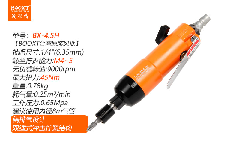 東莞市強(qiáng)勁五金工具有限公司提供臺(tái)灣BOOXT波世特品牌氣動(dòng)工具,風(fēng)批BX-4.5H廠家直銷,臺(tái)灣制造,首件享特價(jià)。咨詢熱線:4008301980