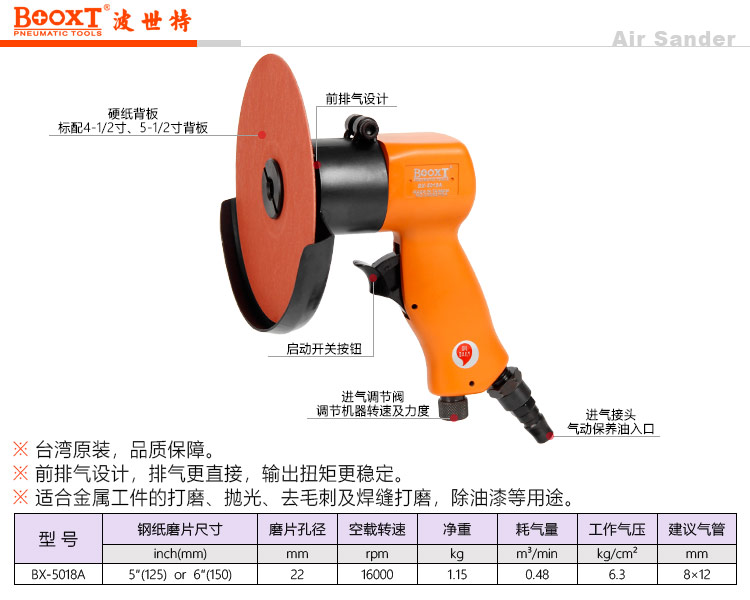 東莞市強(qiáng)勁五金工具有限公司提供臺(tái)灣BOOXT波世特品牌氣動(dòng)工具,氣動(dòng)鋼紙磨片打磨機(jī)BX-5018A廠家直銷,首件享特價(jià)。咨詢熱線:4008301980