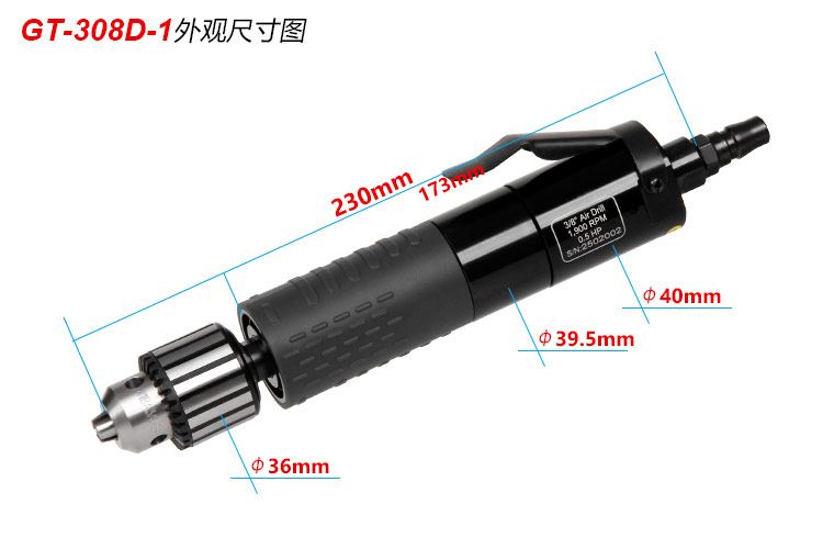 • 產(chǎn)品參數(shù): 夾頭尺寸:3/8" 【10mm】 馬達(dá)功率:0.5HP 空載轉(zhuǎn)速:1900rpm 全 長(zhǎng):230mm 重 量:0.92kg 耗 氣 量:0.69m3/min 【工業(yè)型】