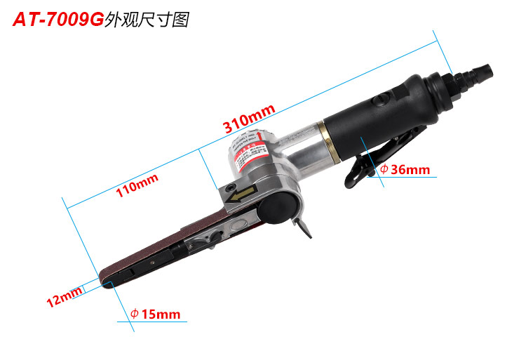 • 產(chǎn)品參數(shù): 砂帶尺寸:10×330mm; 空載轉(zhuǎn)速:18000rpm; 工具長度:310mm; 工具重量:0.78kg; 耗 氣 量:0.65m3/min; 噪 音 值:81db(A) 使用工作氣壓:0.65Mpa; 推薦使用內(nèi)徑8mm氣管; 平時使用應(yīng)多加氣動油保養(yǎng)。 【工業(yè)型/圓手柄】