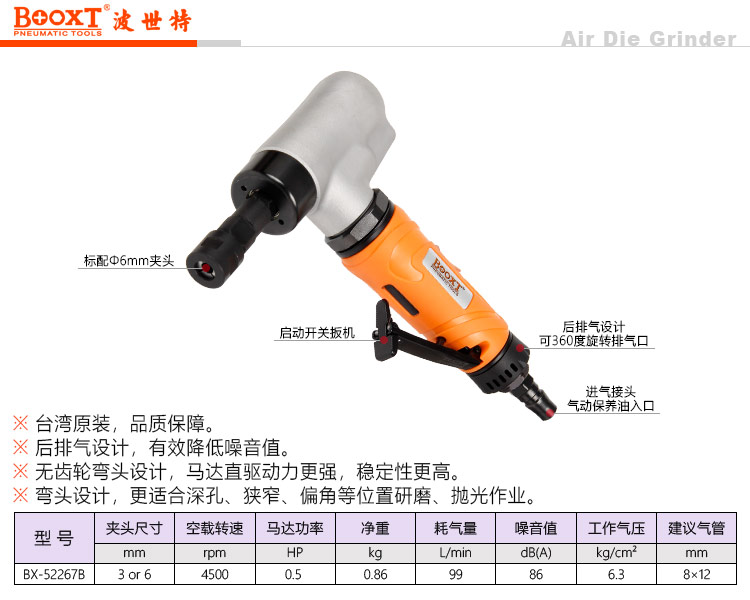 東莞市強勁五金工具有限公司提供臺灣BOOXT波世特品牌氣動工具,4500轉(zhuǎn)風(fēng)磨機BX-52267B廠家直銷,首件享特價。咨詢熱線:4008301980