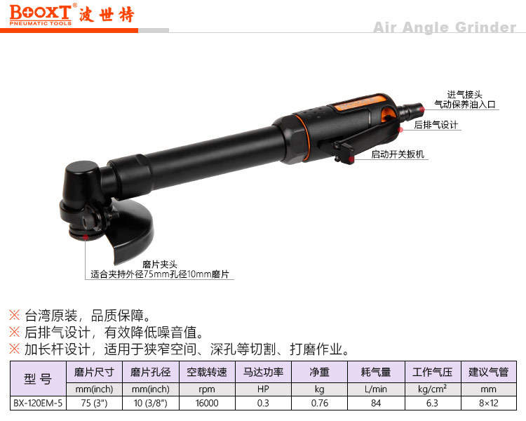 東莞市強(qiáng)勁五金工具有限公司提供臺(tái)灣BOOXT波世特品牌氣動(dòng)工具,加長風(fēng)動(dòng)角磨機(jī)BX-120EM-5廠家直銷,首件享特價(jià)。咨詢熱線:4008301980
