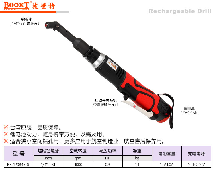 東莞市強(qiáng)勁五金工具有限公司提供臺灣BOOXT波世特品牌五金工具,鋰電航空彎頭鉆BX-120B45DC廠家直銷,首件享特價(jià)。咨詢熱線:4008301980