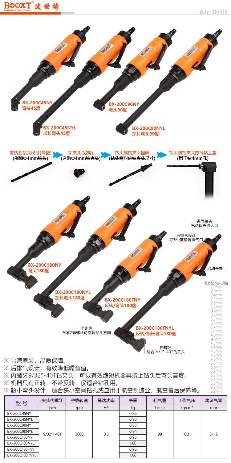 東莞市強(qiáng)勁五金工具有限公司提供臺(tái)灣BOOXT波世特品牌氣動(dòng)工具,反向360度角向氣鉆BX-200C180FNY廠家直銷,首件享特價(jià)。咨詢熱線:4008301980