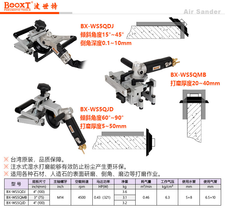 東莞市強勁五金工具有限公司提供臺灣BOOXT波世特品牌氣動工具,氣動石材側(cè)面磨邊機BX-WS5QJD廠家直銷,首件享特價。咨詢熱線:4008301980
