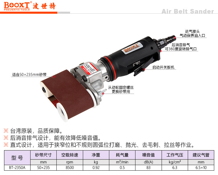 東莞市強(qiáng)勁五金工具有限公司提供臺(tái)灣BOOXT波世特品牌氣動(dòng)工具,直式氣動(dòng)砂帶機(jī)BT-2350A廠家直銷(xiāo),首件享特價(jià)。服務(wù)熱線:4008301980